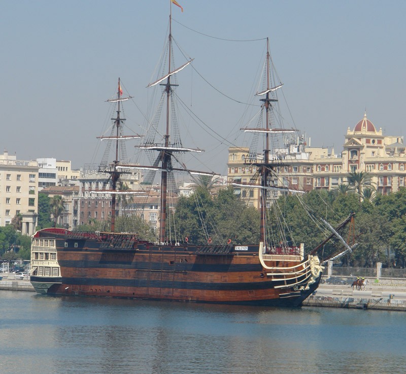 El Galeón Español del Siglo XVIII tiene una réplica a tamaño real, atracada permanentemente en el puerto de Málaga (desde el año 2007), con una concesión administrativa para 12 años renovables. Puede ser remolcado a cualquier puerto de España. Superficie: 2400 m2. La copia exacta del buque insignia de la Armada Española en la Batalla de Trafalgar alberga en su interior un restaurante, cafeterías y una muestra de antigüedades. El nuevo navío Santísima Trinidad, donde el visitante podrá degustar de un buen vino en su bodega, o disfrutar de una cena en la cubierta... y dejar su fantasía volar a otros tiempos, dispone de tres cubiertas con ambientes totalmente diferentes: